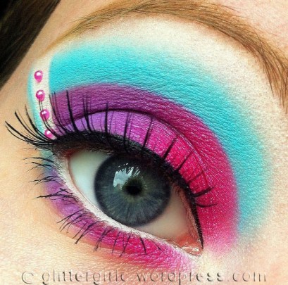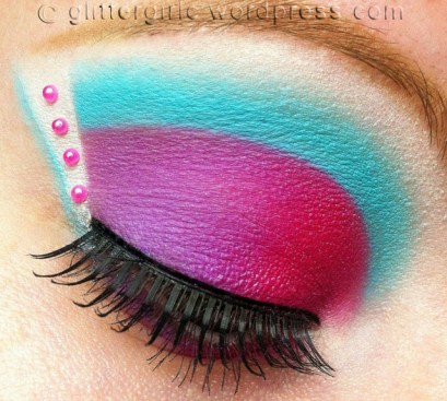 1. I love this look, and the name!!! The colors are so solid! What are the best brushes for packing on the colors like that? 🙂 The jewels add a beautiful touch!!! I am going to make a cake that looks like that!! 😀